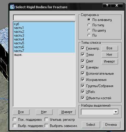 выделите все детали нашего "куба" + сам "куб":