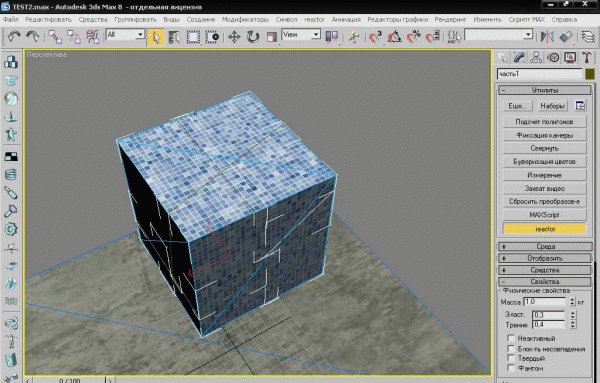 Далее выберите "куб" или одну из его частей, и перейдите на раскрывающуюся ссылку "свойства", всё в том же "reactor'e", и введите