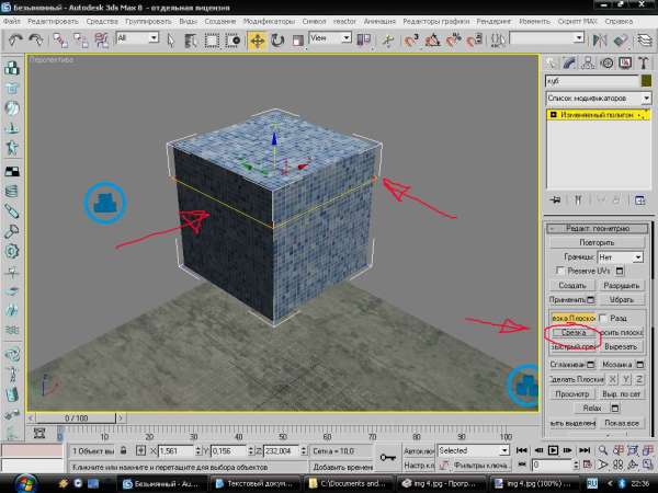 потом передвиньте появившуюся полоску на объекте как вам нужно, и нажмите кнопку "срезка"